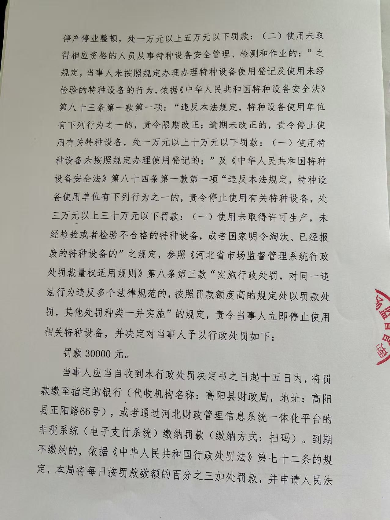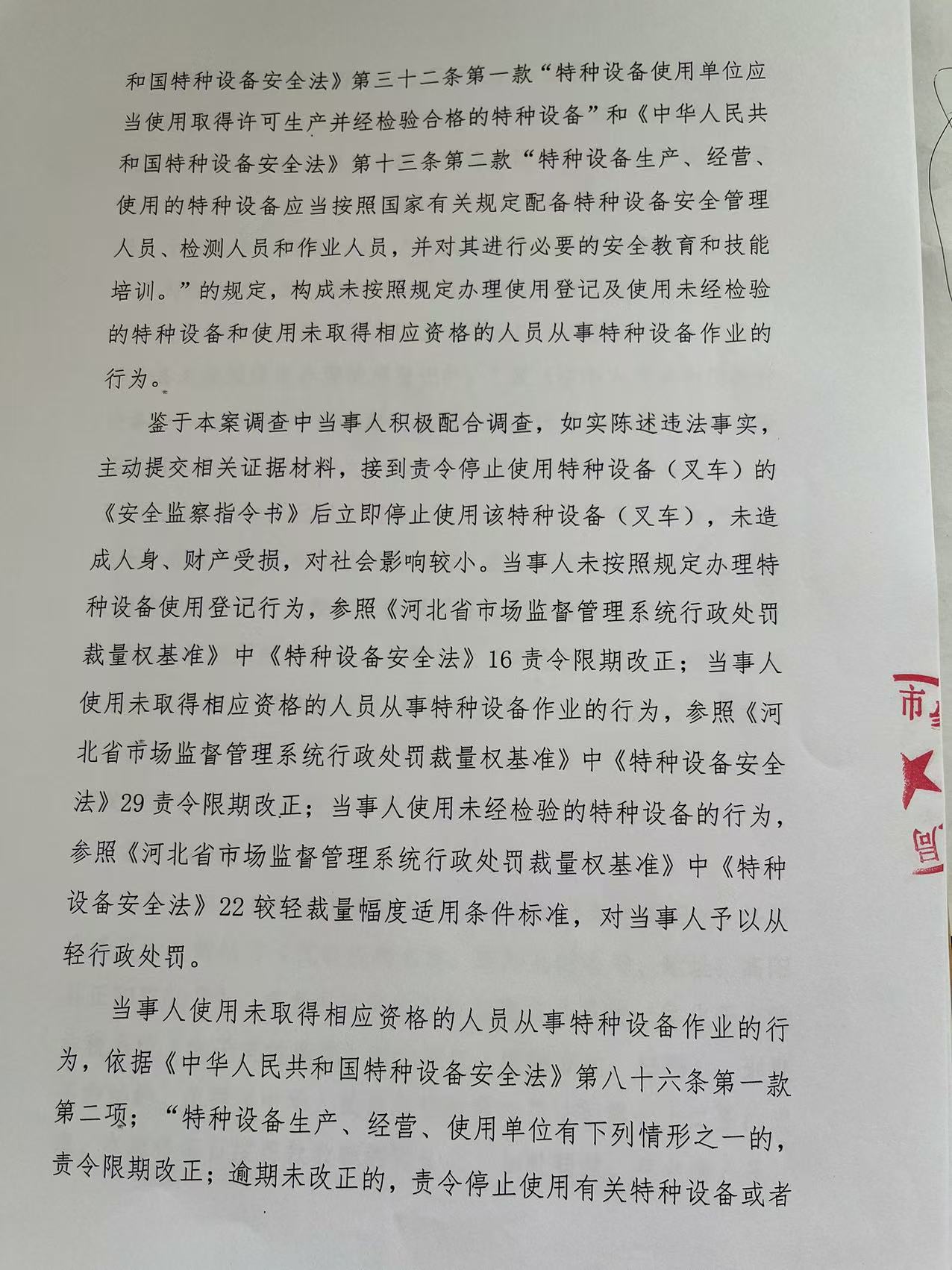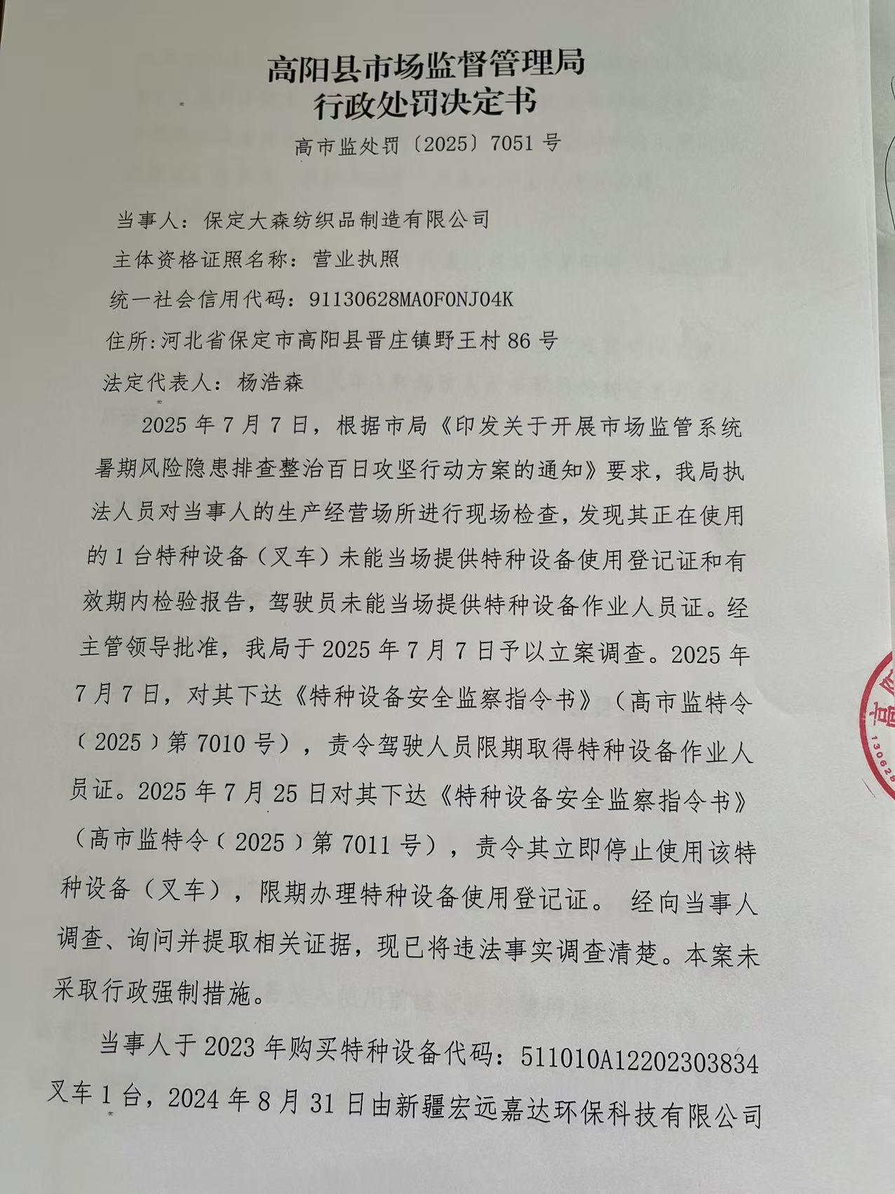 保定大森纺织品制造有限公司使用未经检验的特种设备及未按照规定办理特种设备使用登记和使用未取得相应资格的人员从事特种设备作业案