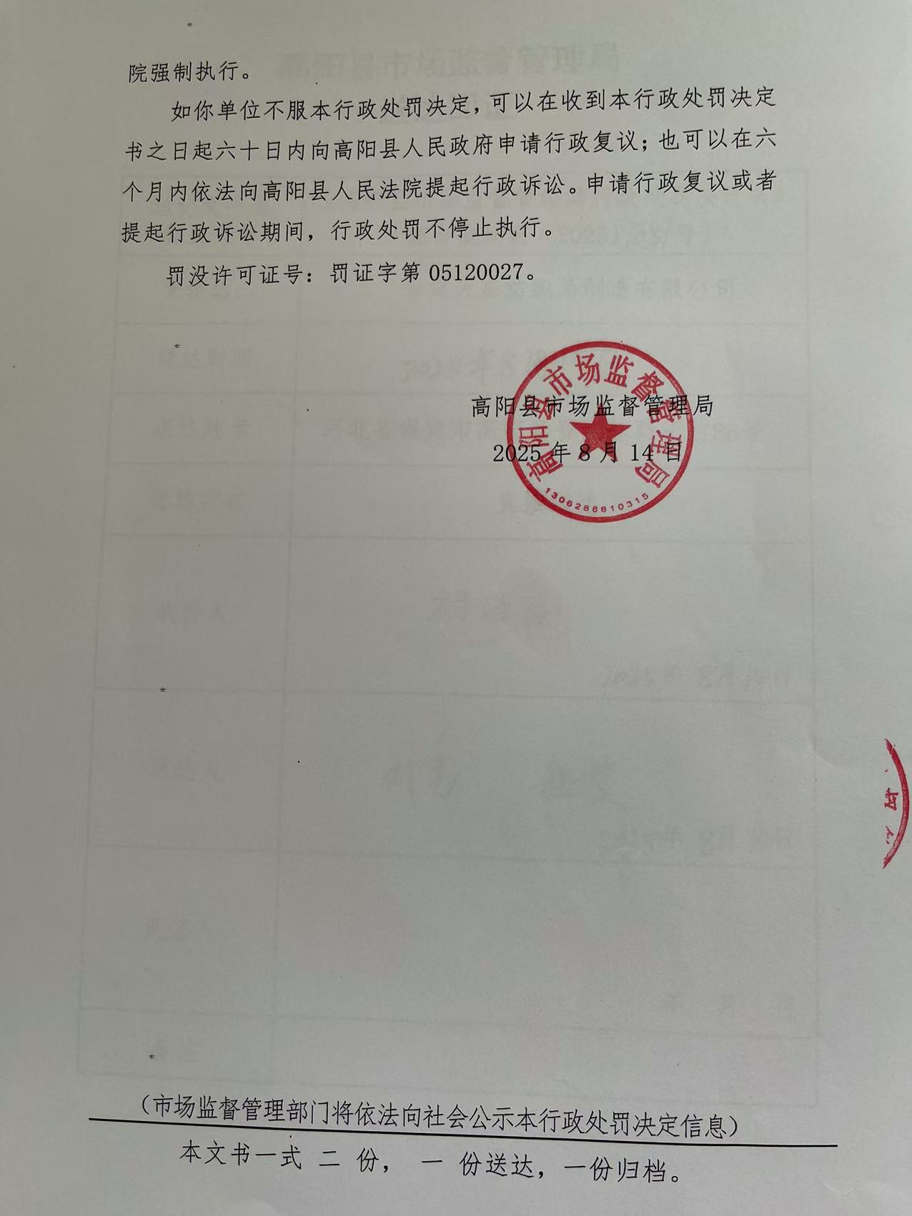 当前位置:首页 > 行政执法公示 > 高阳县市场监督管理局