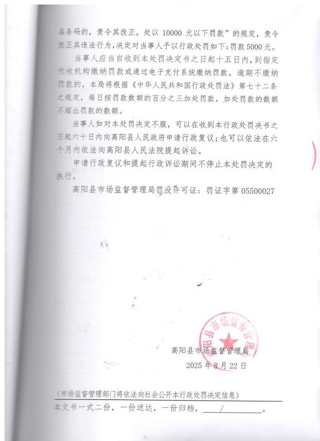 当前位置:首页 > 行政执法公示 > 高阳县市场监督管理局