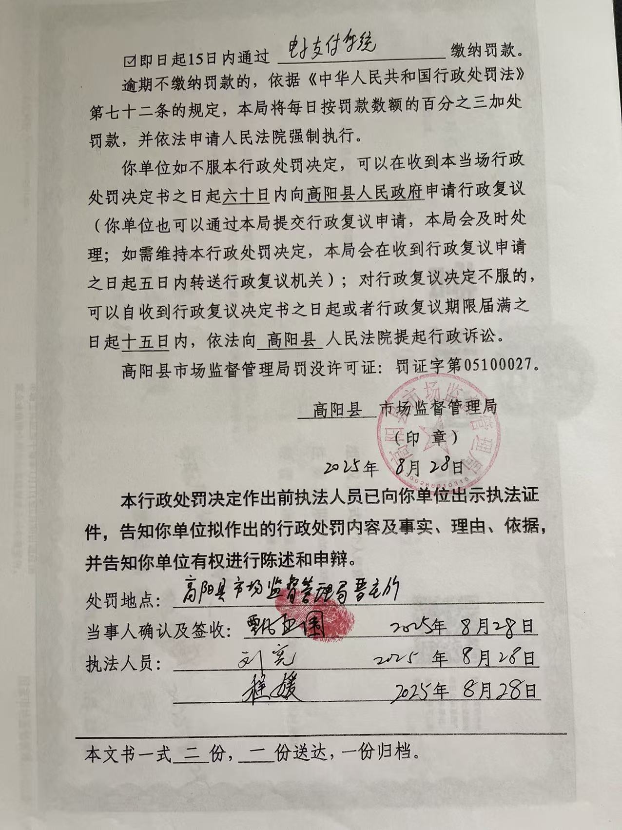 当前位置:首页 > 行政执法公示 > 高阳县市场监督管理局