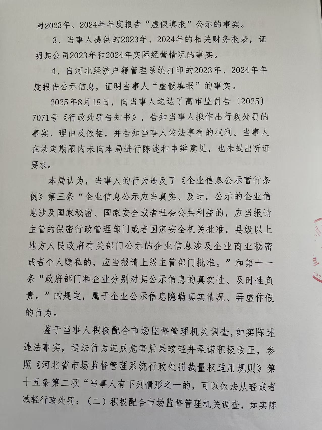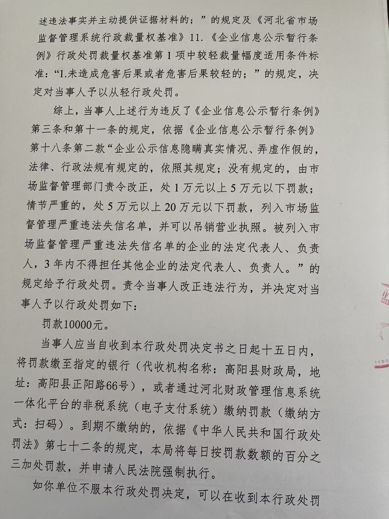 高阳县康特纺织品有限公司企业公示信息隐瞒真实情况、弄虚作假案