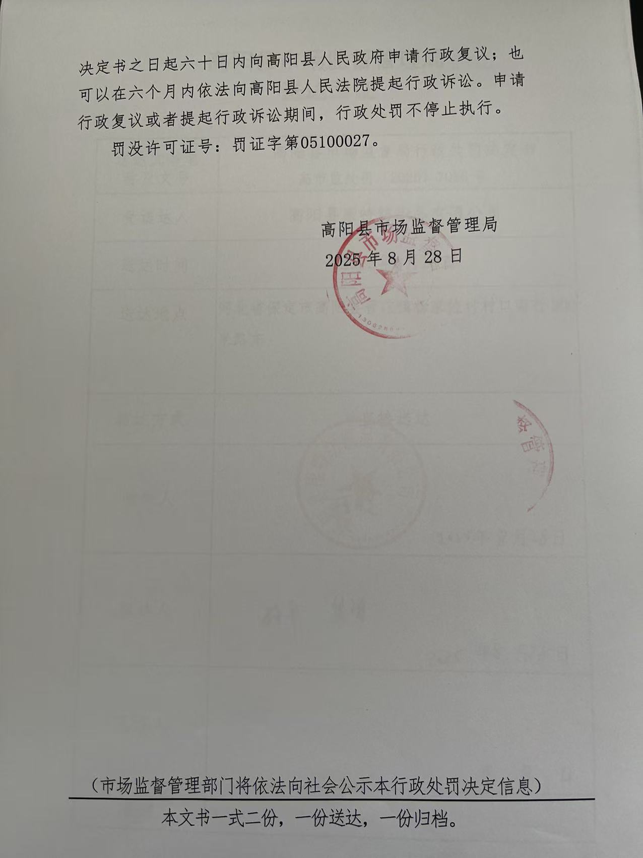 当前位置:首页 > 行政执法公示 > 高阳县市场监督管理局
