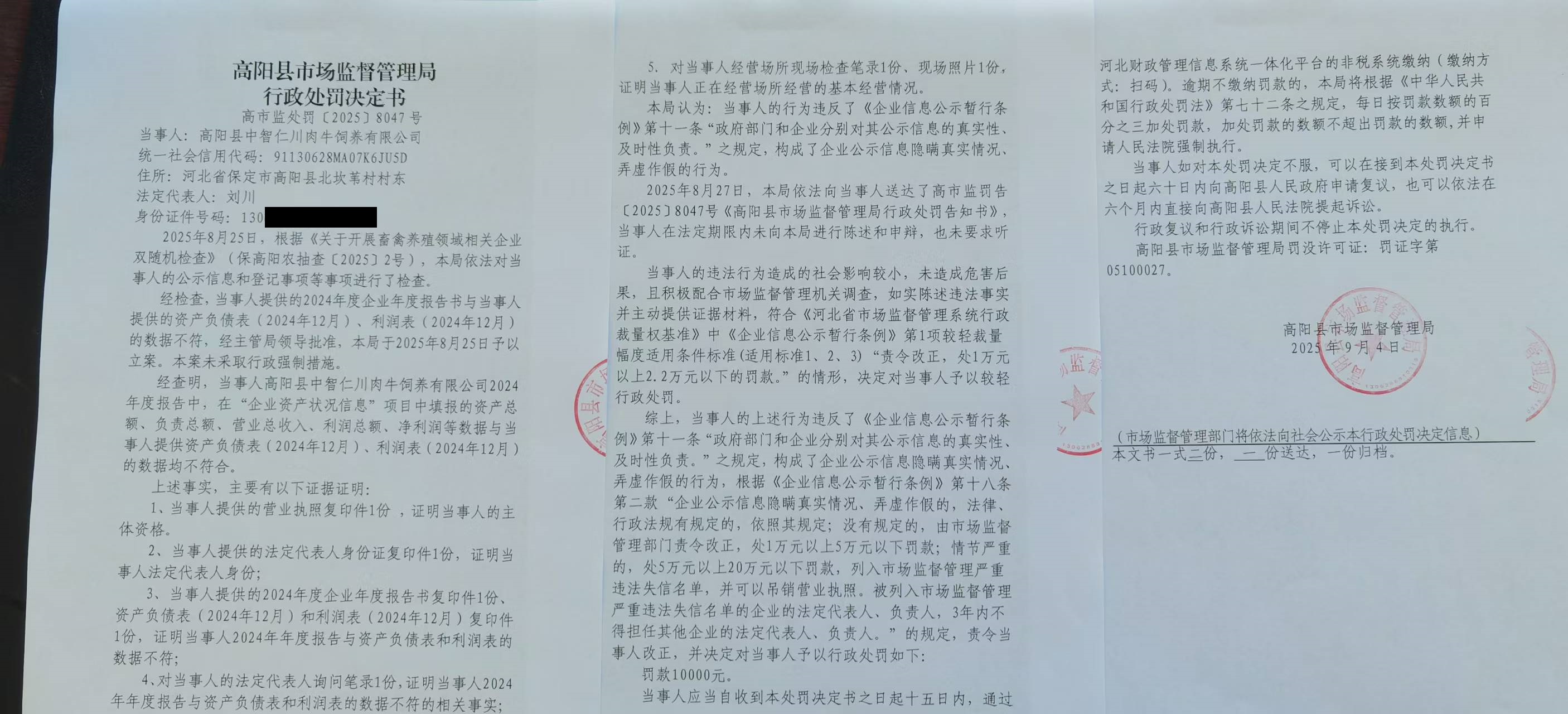 高阳县中智仁川肉牛饲养有限公司企业公示信息隐瞒真实情况、弄虚作假案