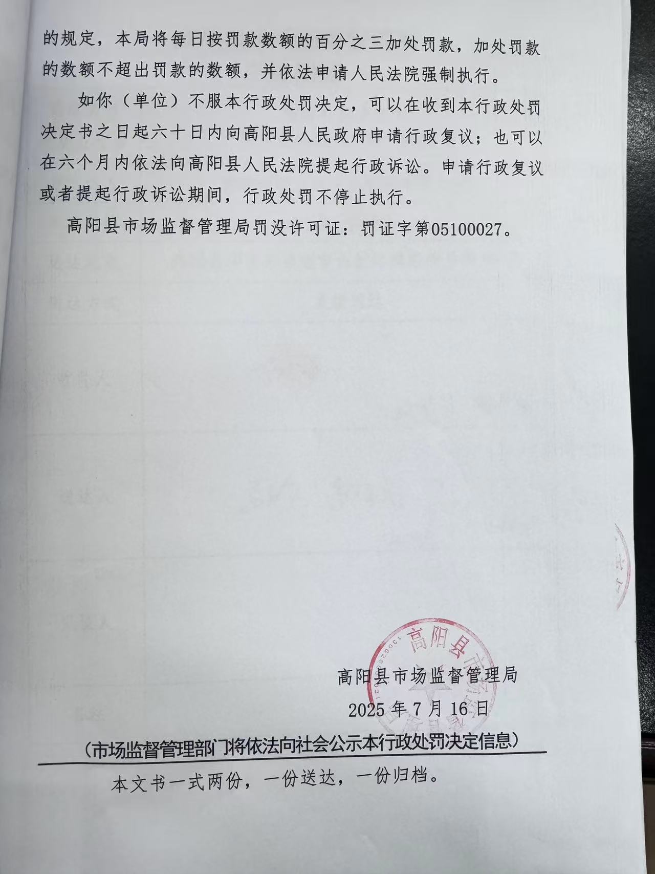 当前位置:首页 > 行政执法公示 > 高阳县市场监督管理局