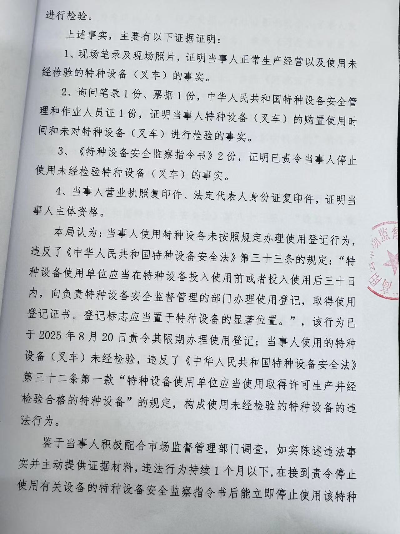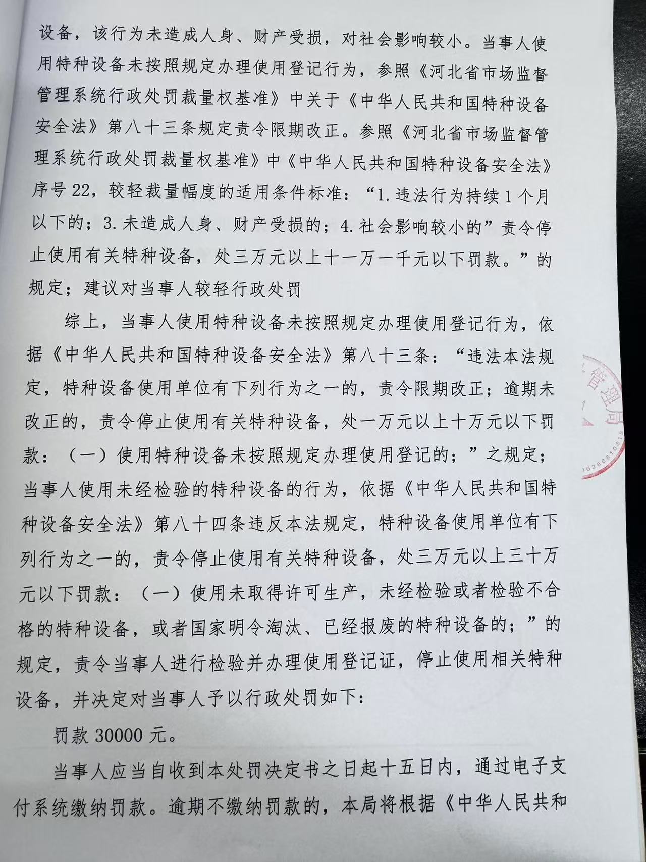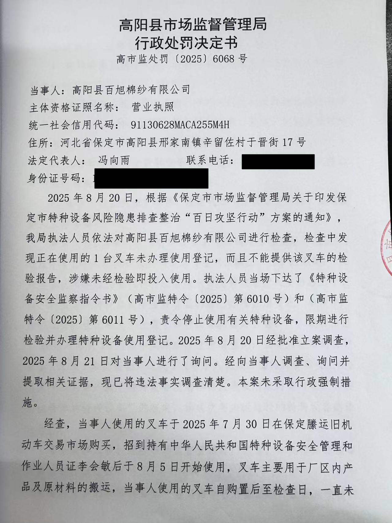 高阳县百旭棉纱有限公司使用未经检验的特种设备