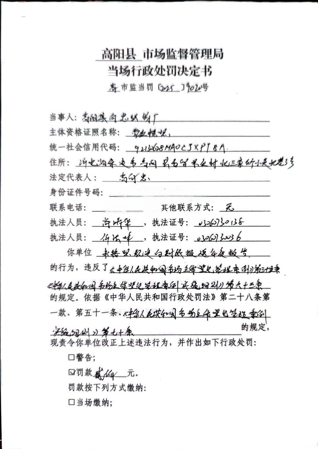 当前位置:首页 > 行政执法公示 > 高阳县市场监督管理局