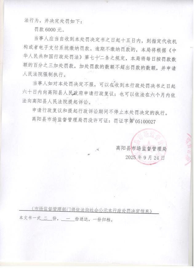 当前位置:首页 > 行政执法公示 > 高阳县市场监督管理局