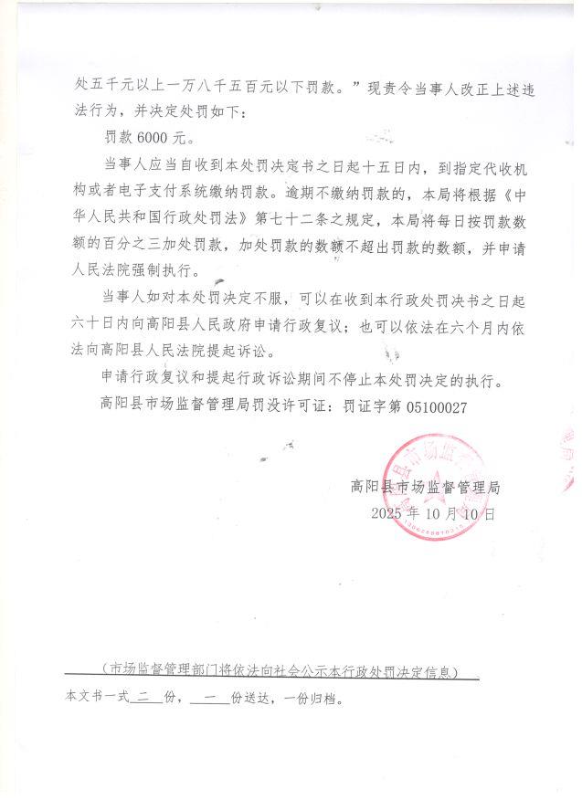 当前位置:首页 > 行政执法公示 > 高阳县市场监督管理局