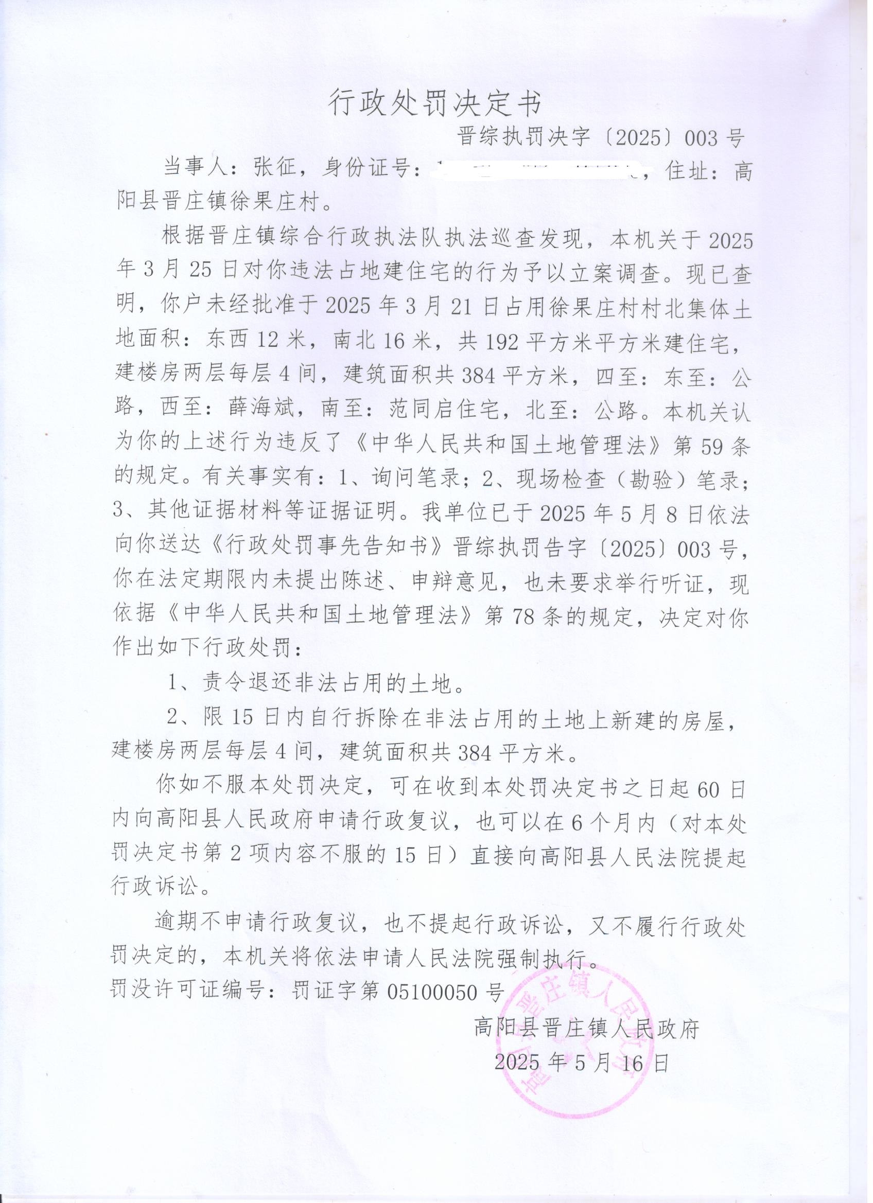 当前位置:首页 > 行政执法公示 > 高阳县晋庄镇人民政府