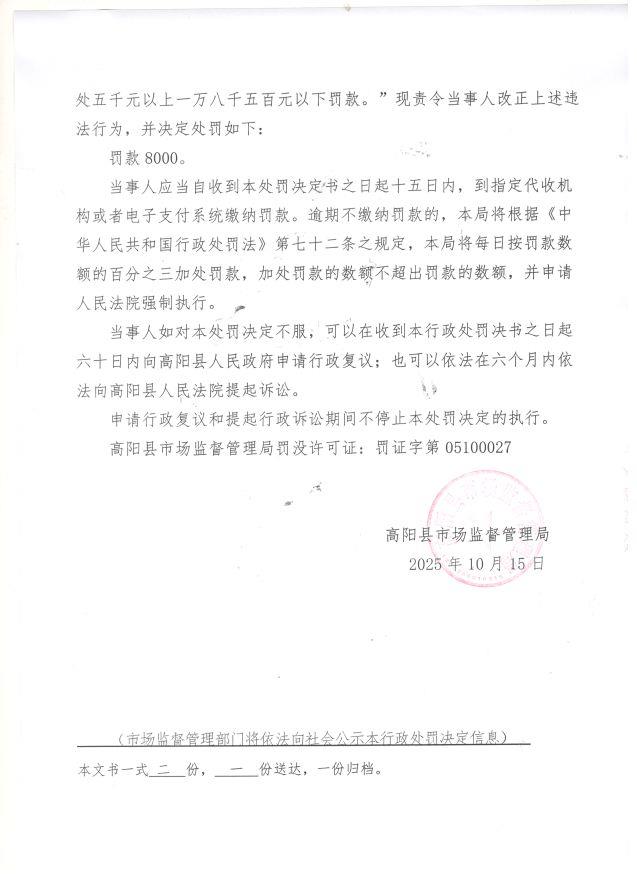 当前位置:首页 > 行政执法公示 > 高阳县市场监督管理局