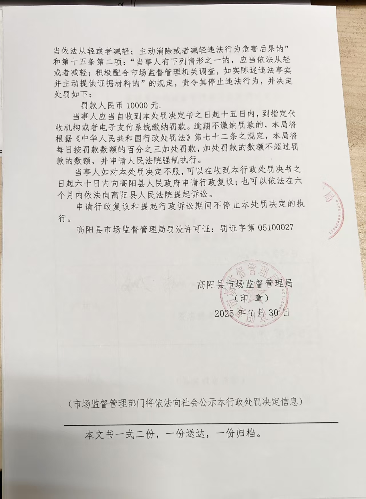 当前位置:首页 > 行政执法公示 > 高阳县市场监督管理局