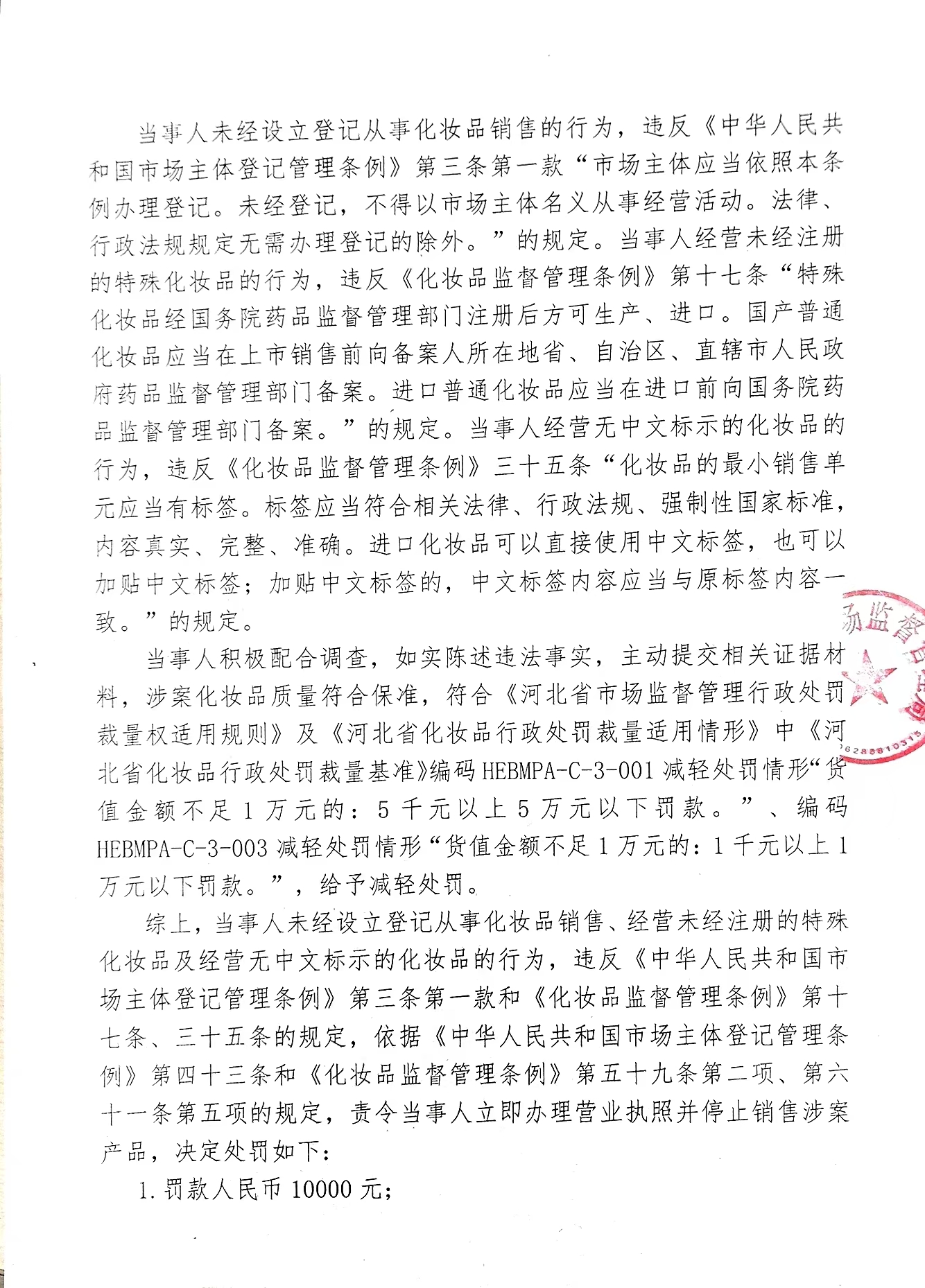 张冰未经设立登记从事化妆品销售、经营未经注册的特殊化妆品和经营无中文标签的化妆品案