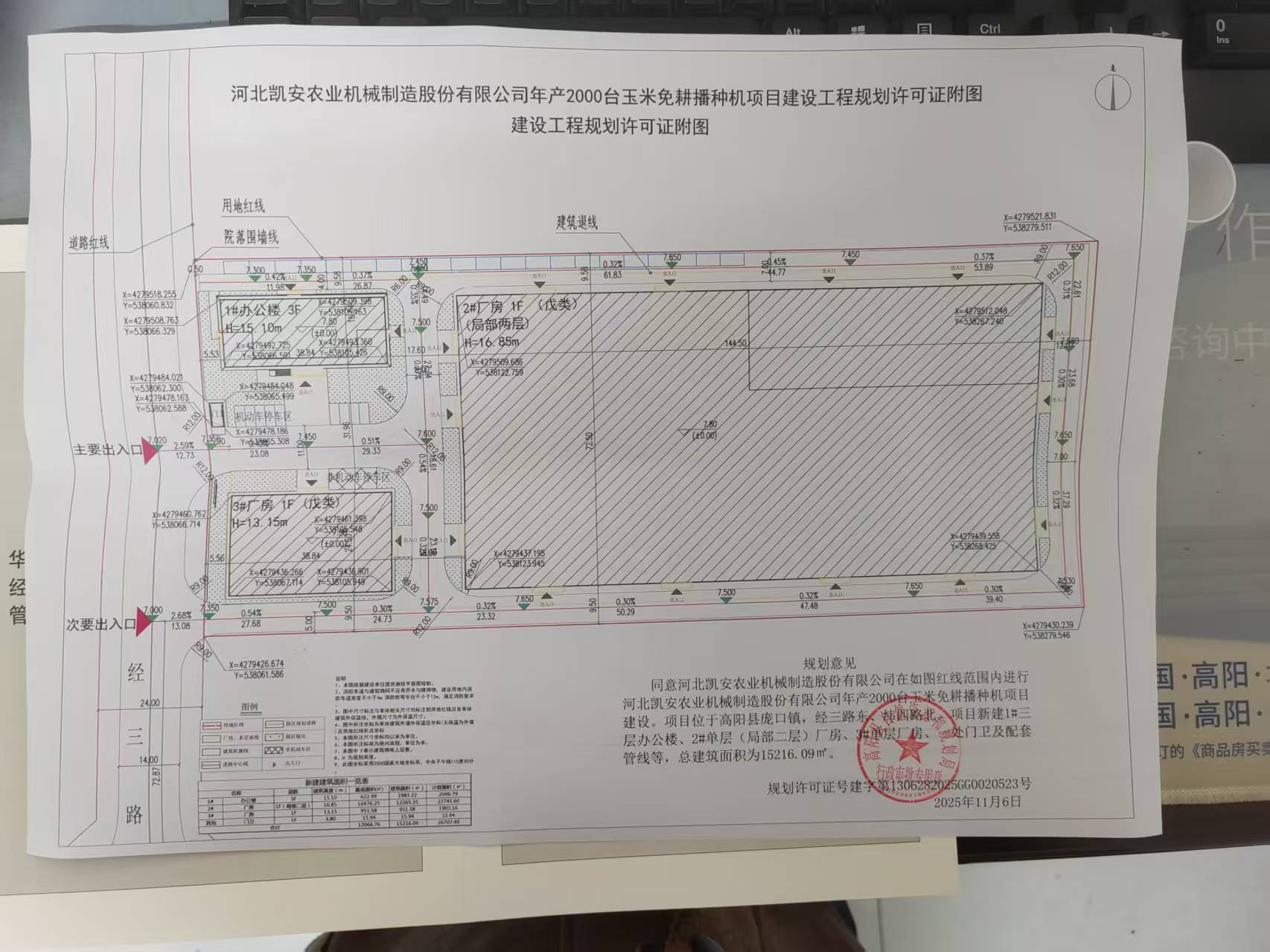 河北凯安农业机械制造股份有限公司年产2000台玉米免耕播种机项目建设工程规划许可证