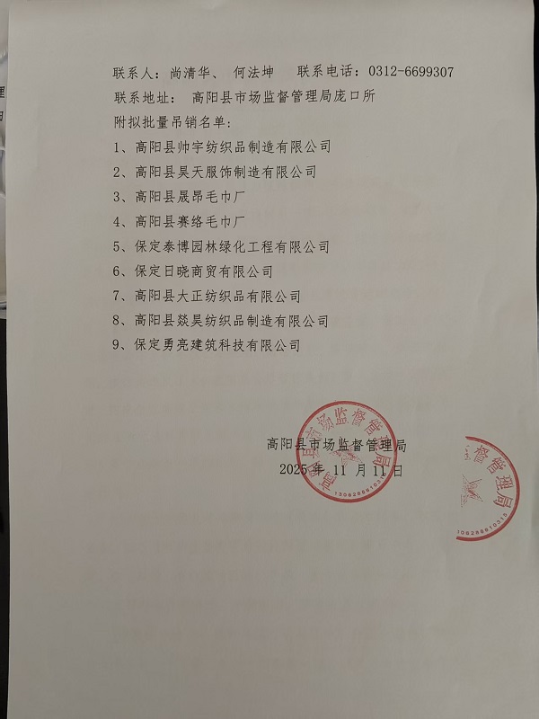 当前位置:首页 > 行政执法公示 > 高阳县市场监督管理局