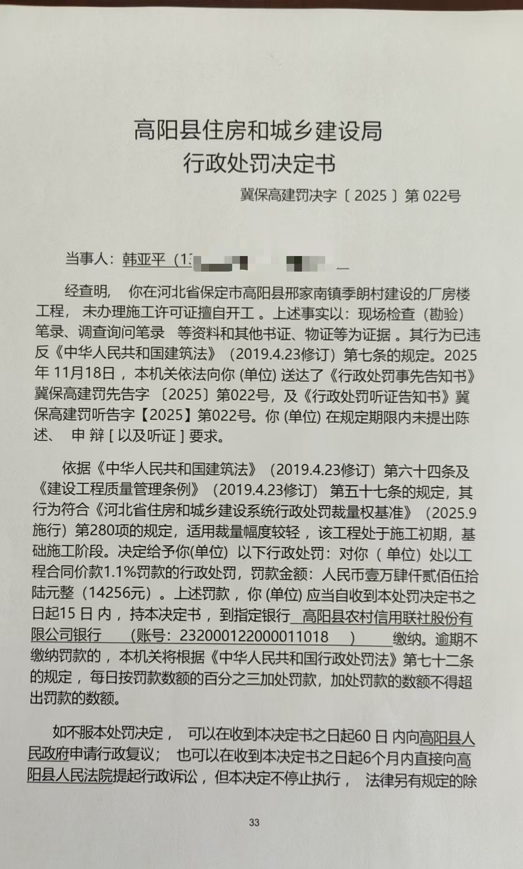 冀保高建罚决字【2025】第22号