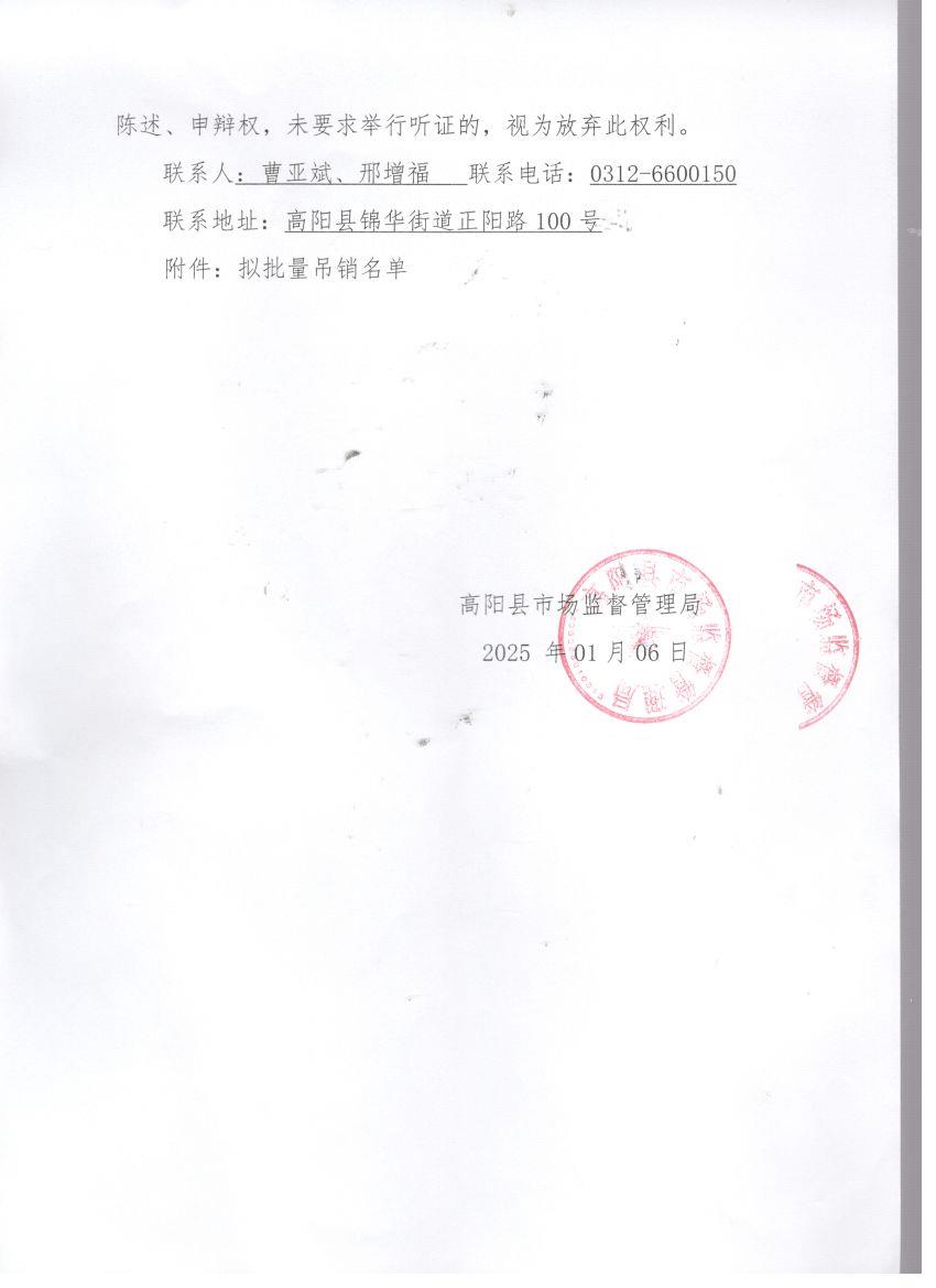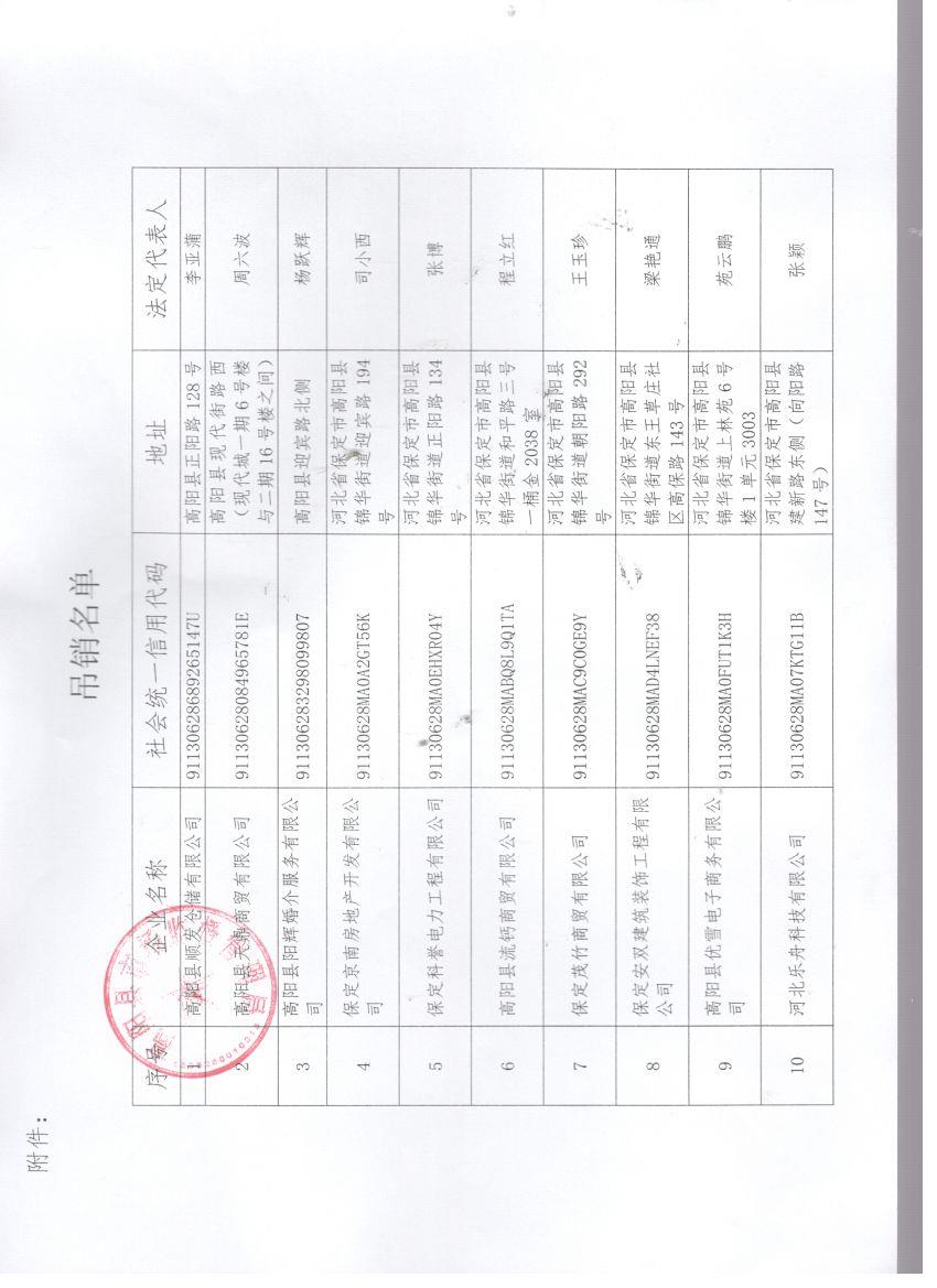 关于拟吊销保定安双建筑装饰工程有限公司等10家企业营业执照行政处罚告知的公告