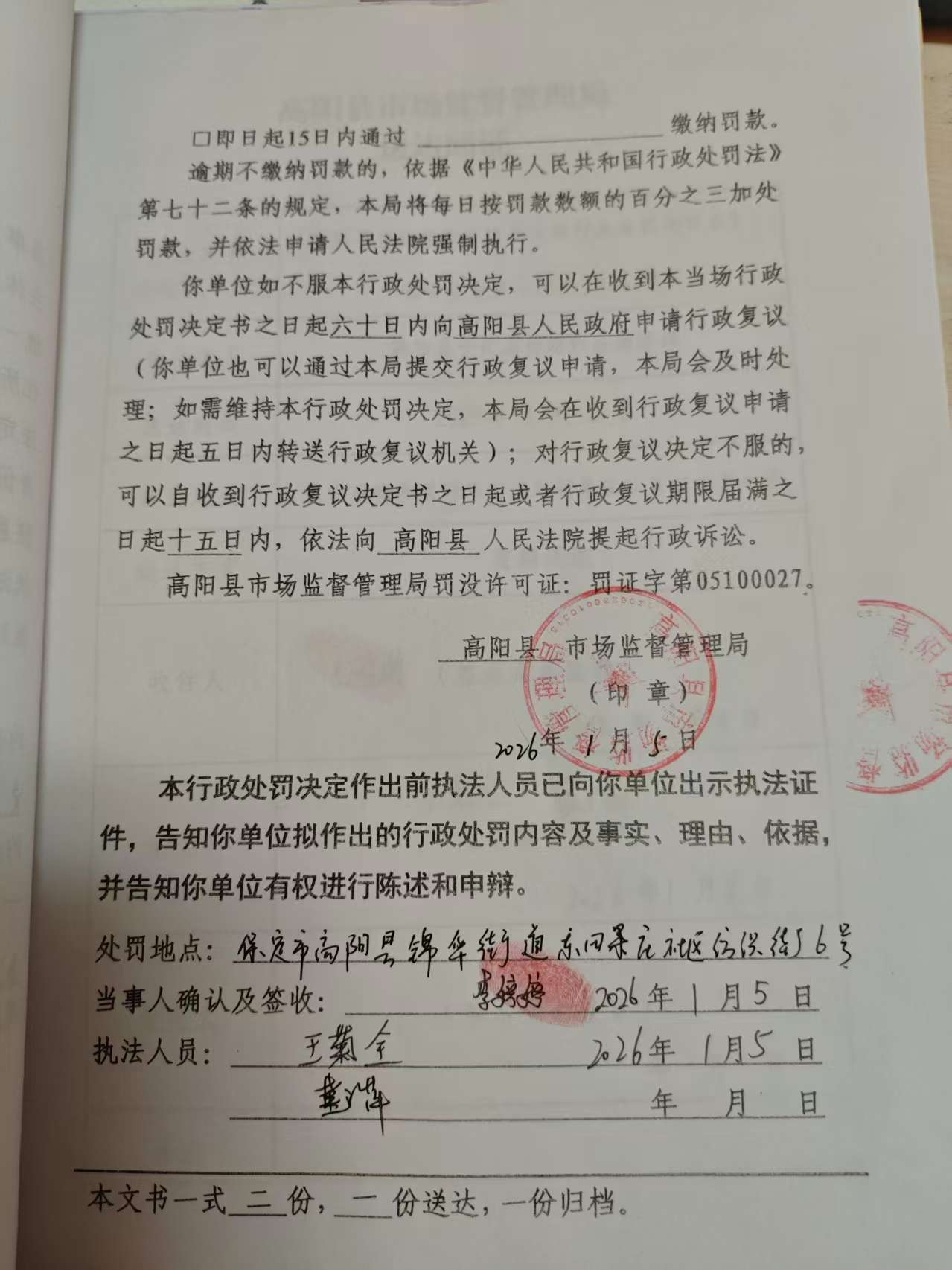 当前位置:首页 > 行政执法公示 > 高阳县市场监督管理局