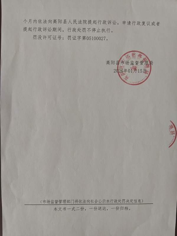 当前位置:首页 > 行政执法公示 > 高阳县市场监督管理局