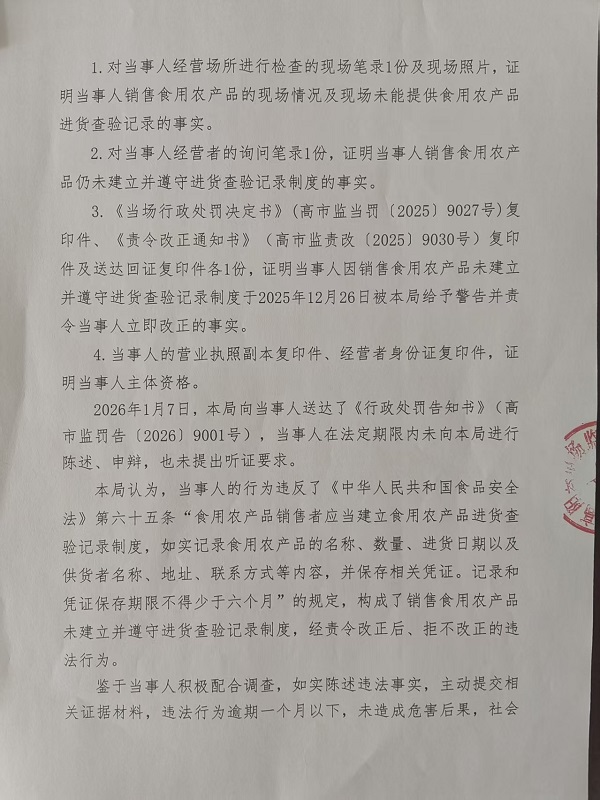 高阳县梁二便利店销售食用农产品未建立并遵守进货查验记录制度案