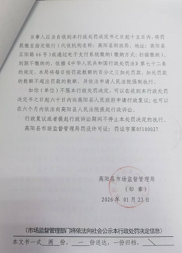 当前位置:首页 > 行政执法公示 > 高阳县市场监督管理局