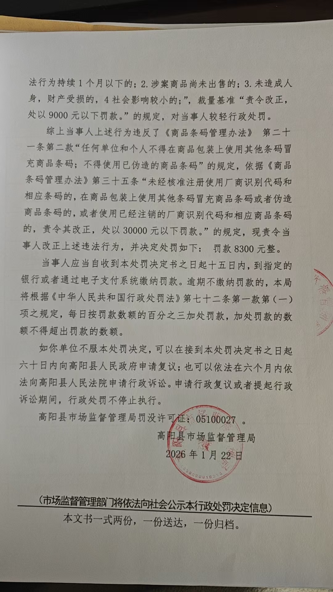当前位置:首页 > 行政执法公示 > 高阳县市场监督管理局