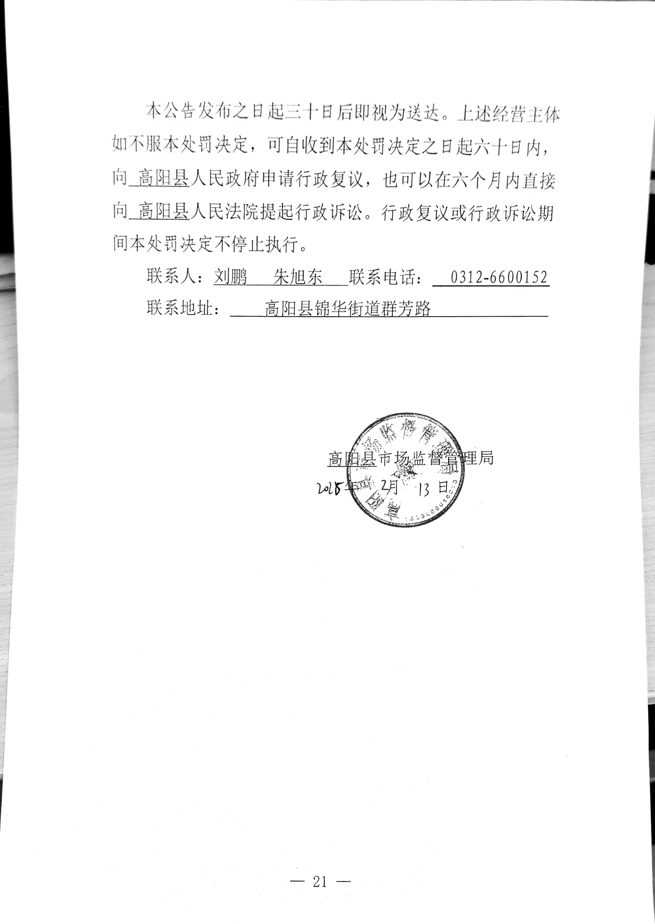当前位置:首页 > 行政执法公示 > 高阳县市场监督管理局