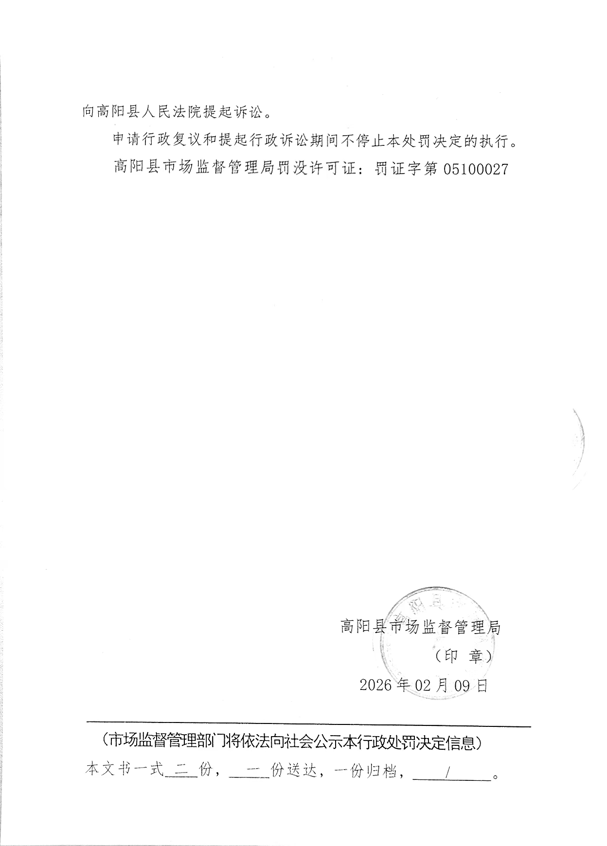当前位置:首页 > 行政执法公示 > 高阳县市场监督管理局