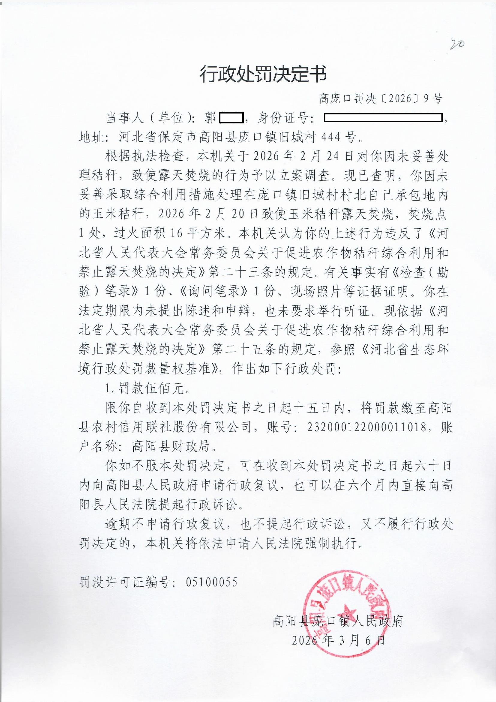 庞口镇旧城郭某某未妥善处理秸秆致使露天焚烧案