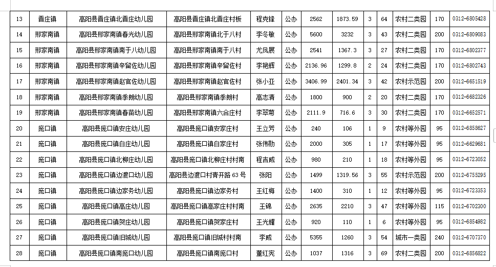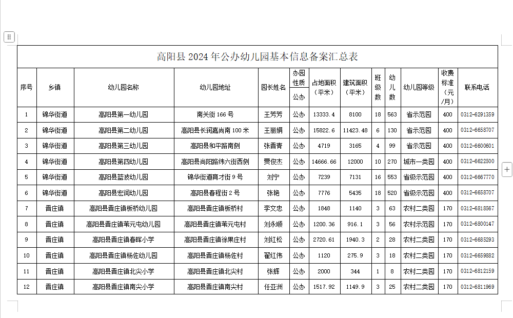 2.幼儿园要按照要求填报《幼儿园基本信息备案公示表》,各乡镇总校对幼儿园上报信息严格审查,准确无误后,于 11 月1日前将文字版(总校校长签字加盖公章)和电子版交高阳县教育和体育局综合教育股,将在政府网站上公示。填报内容要实事求是,如填报虚假信息,一经查实,将严肃处理。