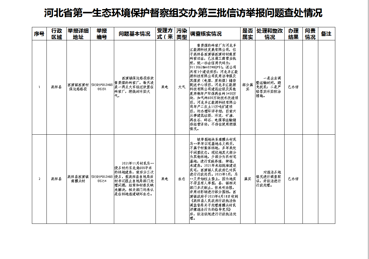 河北省第一生态环境保护督察组交办我县第三批信访举报问题查处情况