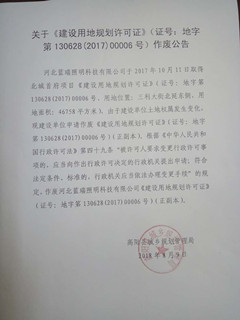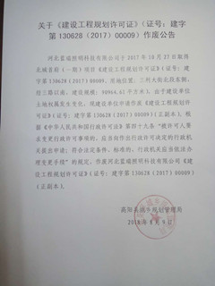 《建设用地规划许可证》(证号:地字第130628(2017)00006、建字第130628(2017)00009、00010)作废公告