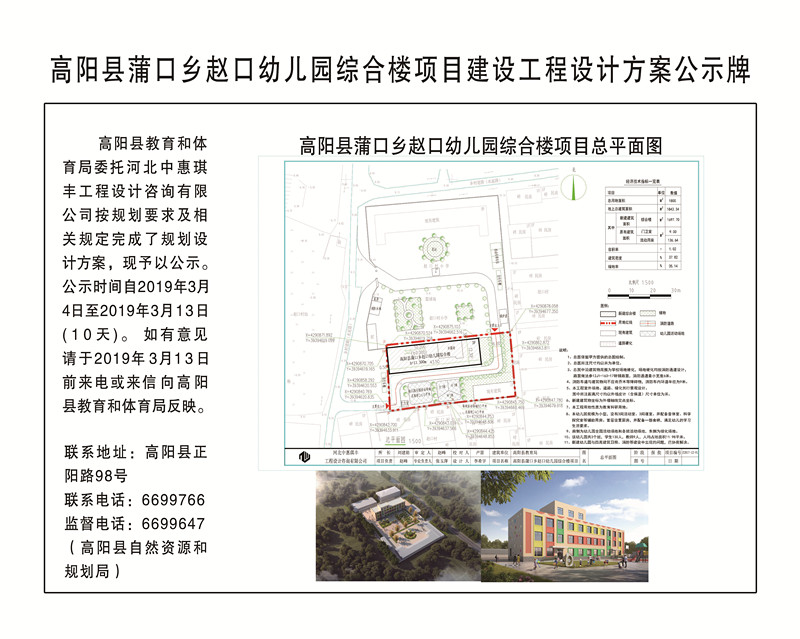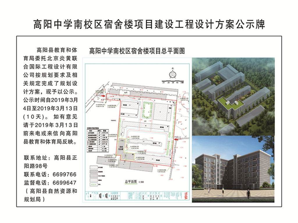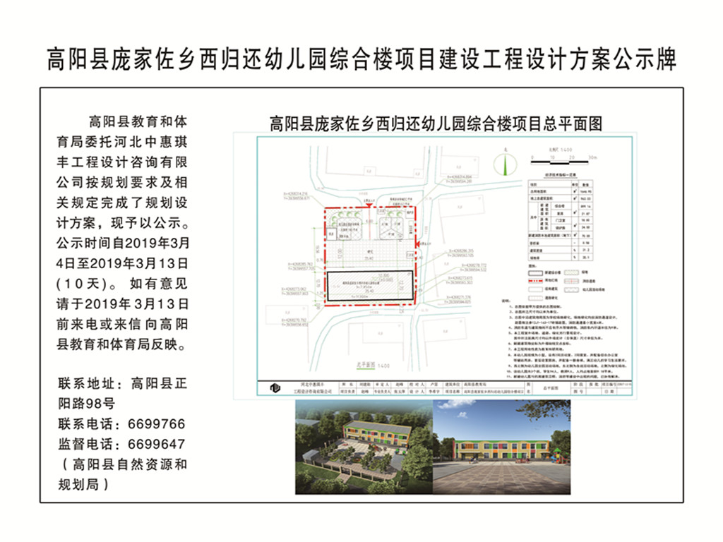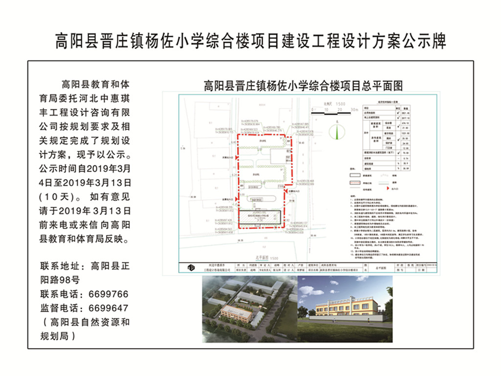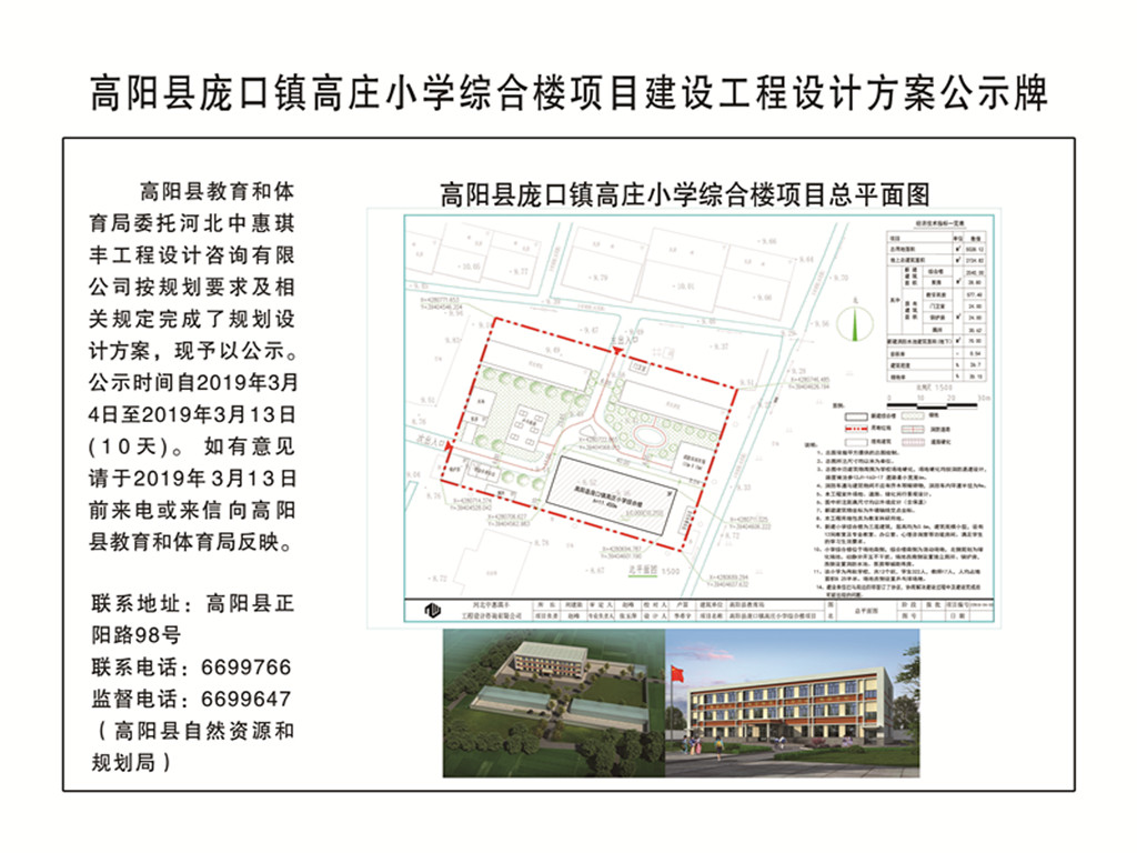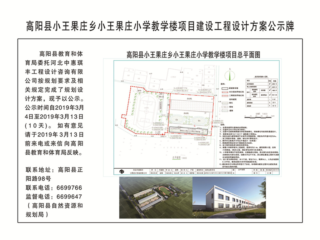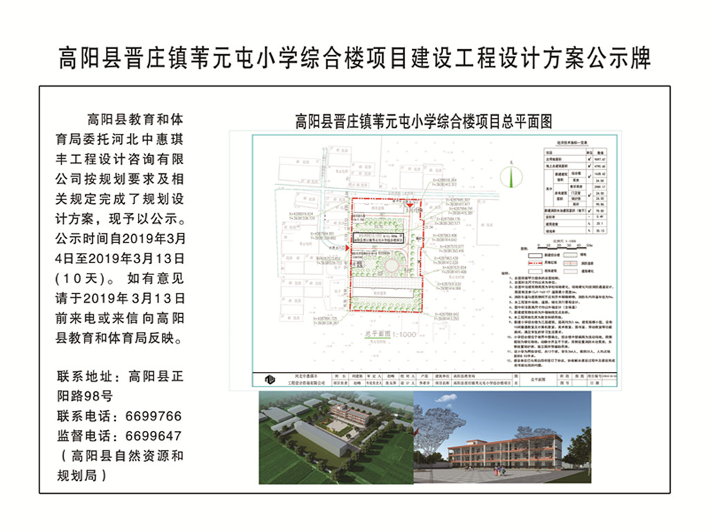 高阳县晋庄镇苇元屯小学综合楼等11个项目建设工程设计方案公示牌