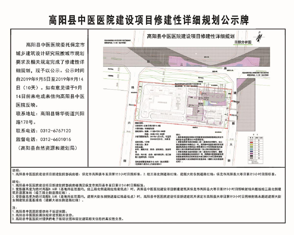 高阳县中医医院建设项目修建性详细规划公示牌