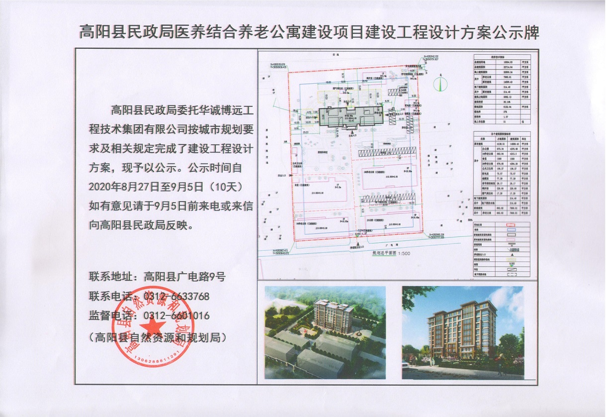 高阳县民政局医养结合养老公寓建设项目建设工程设计方案公示