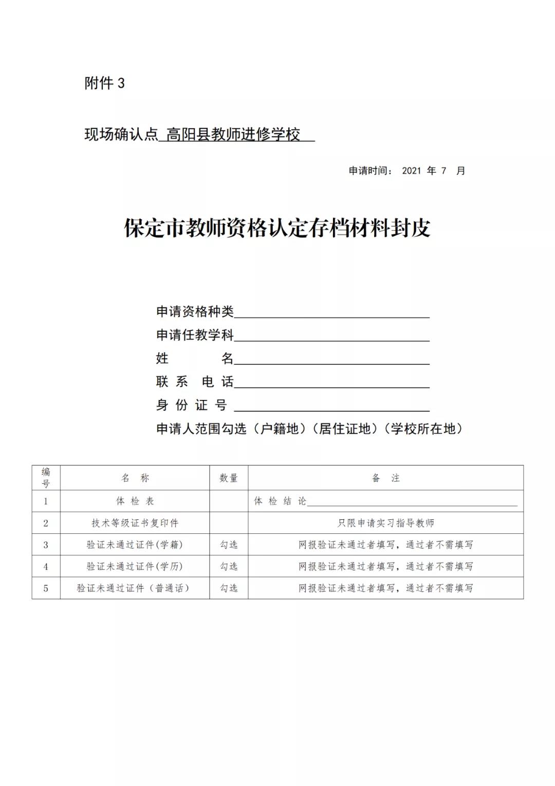 1.高阳县教师资格认定存档材料封皮(见附件3)