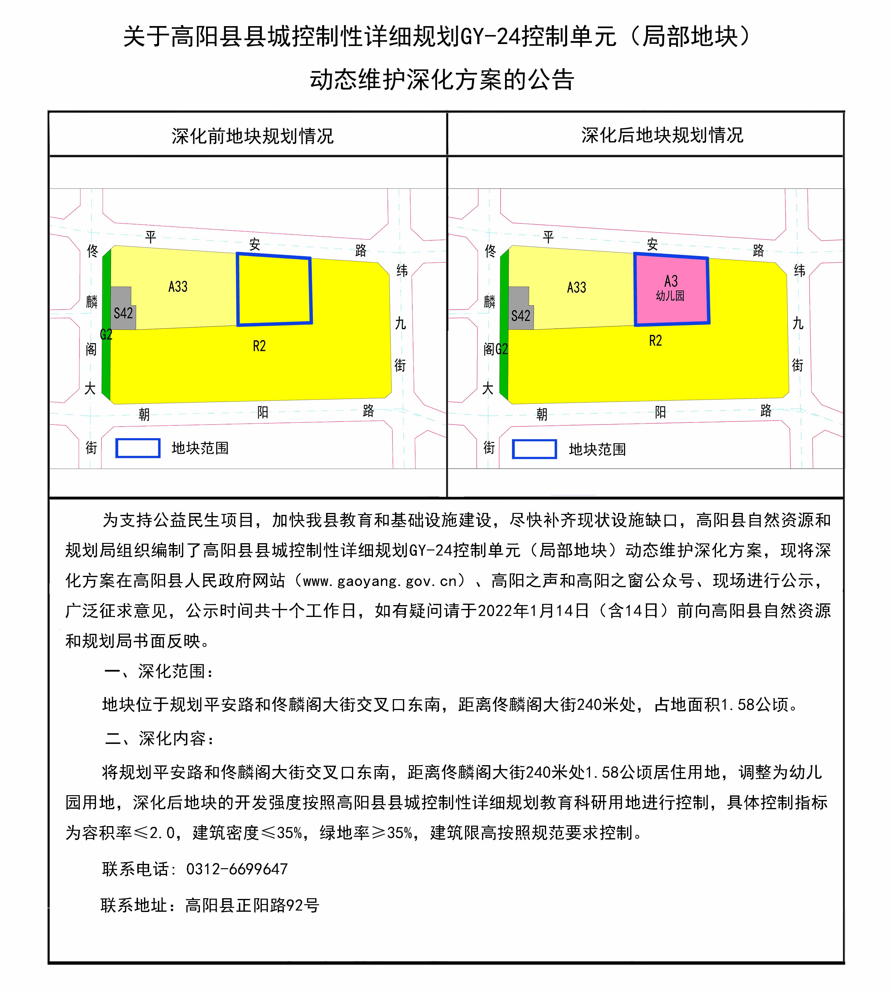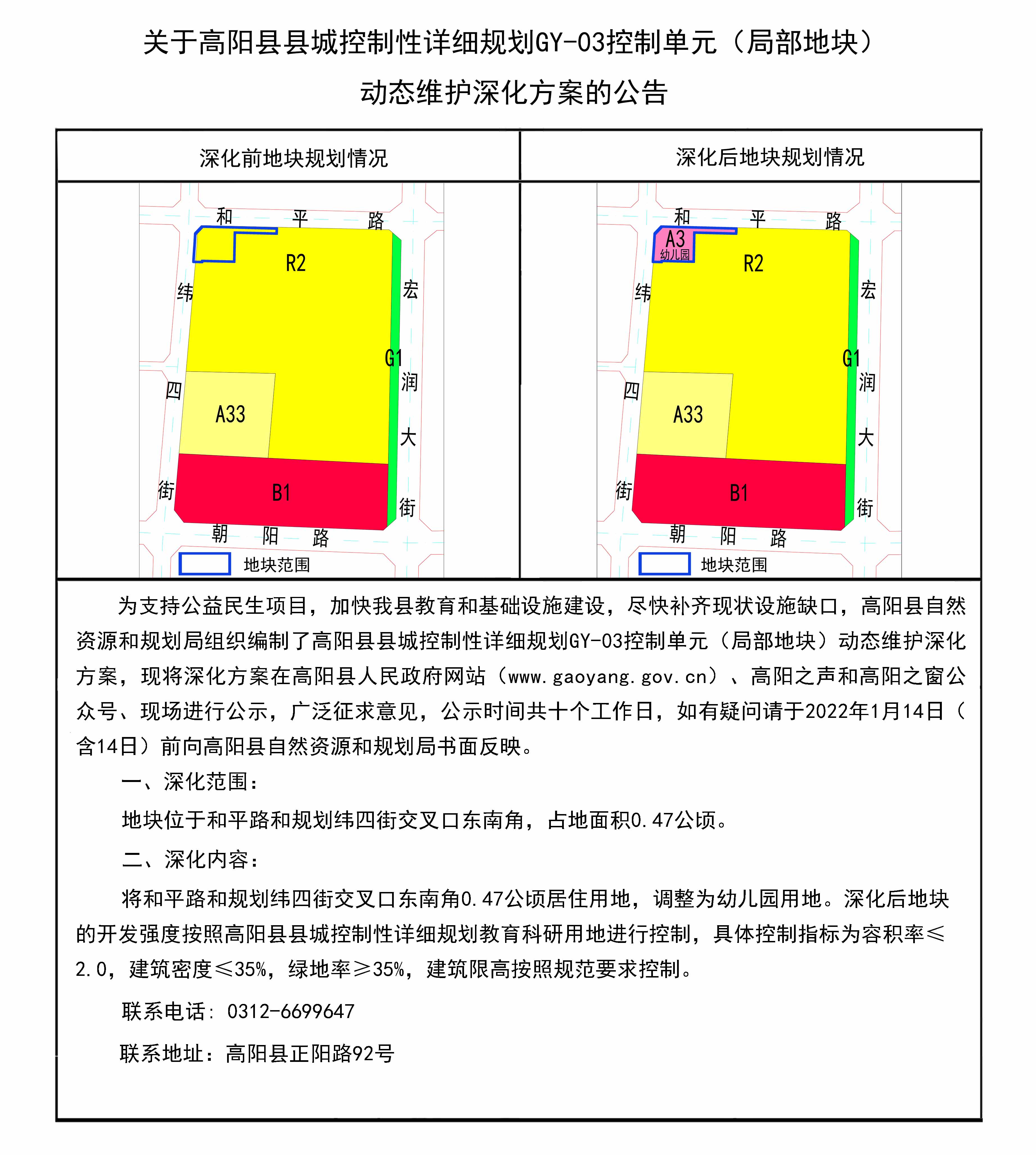 关于高阳县县城控制性详细规划GY-03、13、20、24控制单元(局部地块)动态维护深化方案的公告